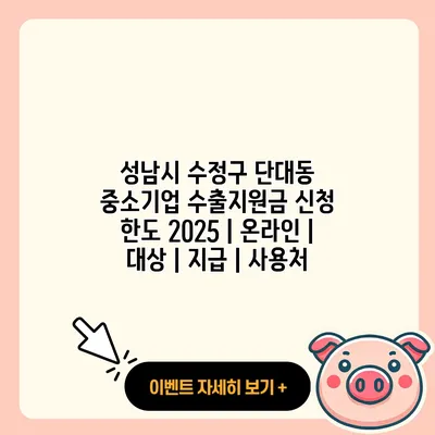 성남시 수정구 단대동 중소기업 수출지원금 신청 한도 2025 | 온라인 | 대상 | 지급 | 사용처