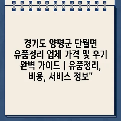 경기도 양평군 단월면 유품정리 업체 가격 및 후기 완벽 가이드 | 유품정리, 비용, 서비스 정보”