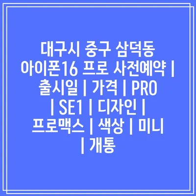 대구시 중구 삼덕동 아이폰16 프로 사전예약 | 출시일 | 가격 | PRO | SE1 | 디자인 | 프로맥스 | 색상 | 미니 | 개통